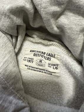 Vintage American Eagle Athletics Hoodie, Heather Grey with Green and White Graphics, Size Large.