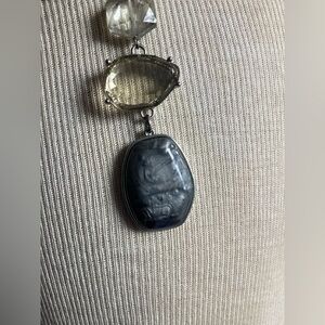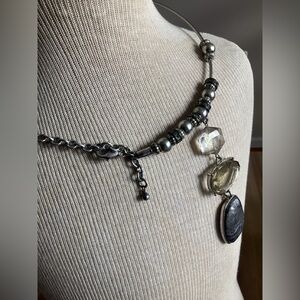 Enhance your style with this chic necklace featuring stunning silver and gray gemstones. Perfect for any occasion, this piece adds a touch of elegance to your ensemble.