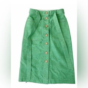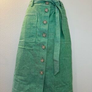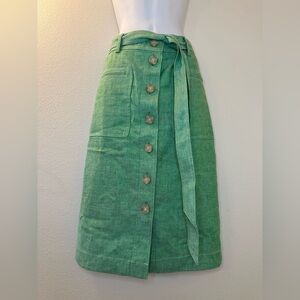 J.Crew Green Linen Blend Button Front Midi Skirt 6 casual spring skirt