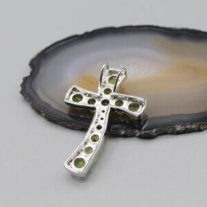 Jewelry pendant cross religious 925 sterling silver green peridot statement