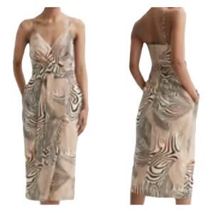 Reiss Dress Rosie fitted animal print midi beige brown size 8