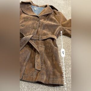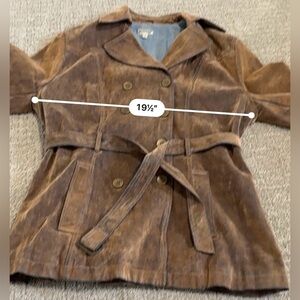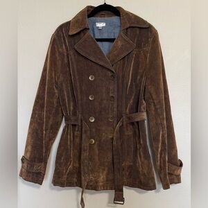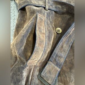 This is the coolest jacket. It looks suede but is cotton. It’s such a cool looking fabric. Good condition!