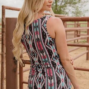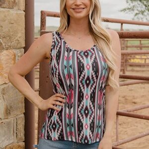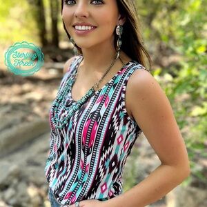 Be the life of the party with our Gulf Coast Tank! This stylish top features a charming black, tan, pink, and turquoise aztec print. Whether you're beachin' it up or going on a summer night out, this tank will have you lookin' sassy and fun! #Mesmerizing🤩