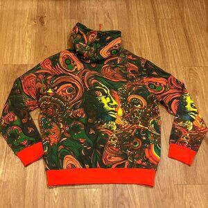 AGTAWH Men French Terry Abstract Motif Print Hoodie Multicolor Size XL