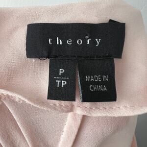 THEORY Light Pink Gyda Silk Blouse V-Neck Cuffed Short Sleeve Work Casual P XS
