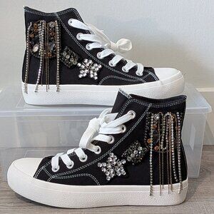 Super cute high top sneakers with bejeweled design