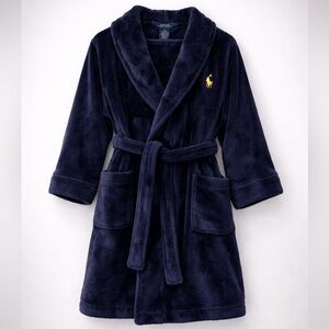 Polo Ralph Lauren Boys Size 7 Navy Plush Fleece Robe Belted Pony Logo