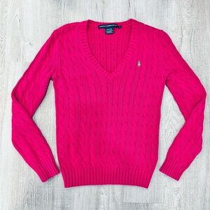 Ralph Lauren Sport Vintage Pink V-Neck Cable Knit Sweater Small