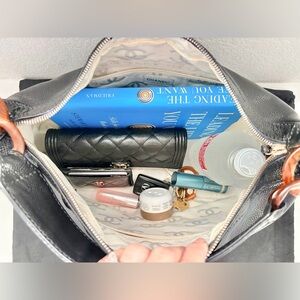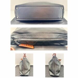 Exterior leather is excellent with minor creases due to natural folds. Exterior color is black & any other colors seen in photos are from glare. Leather strap has no rip/tear/crack, corners are great with no flaws, interior has minor discoloration & some noticeable uneven dyed right below zipper, all hardware are smooth, resin material is still great. Overall fantastic condition for its age. No odor. Smoke-free, hypo pet-friendly home.