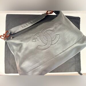 Auth CHANEL Black CC Caviar Large Hobo Bag, 14.9” x 10.2”
