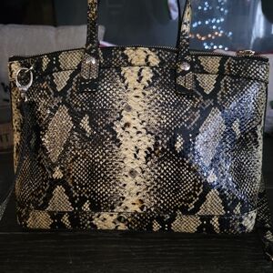 Henri Bendel W57TH Python Embossed Leather Top Handle Satchel with crossbody/shoulder strap