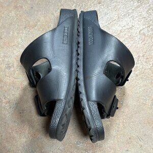 Visible scuff marks on straps and slight wear on the footbed. Measurements: Length = 9.5 inches, Width = 3.6 inches.