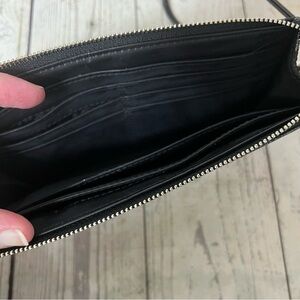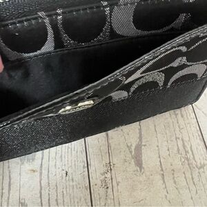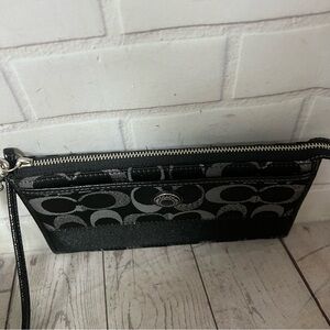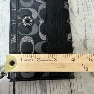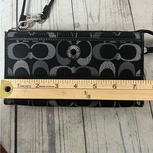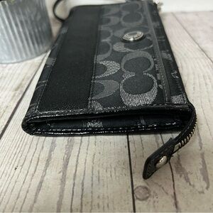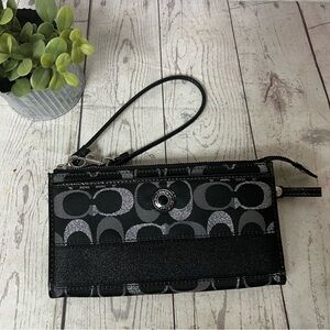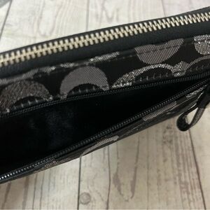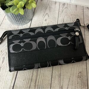 Coach Black Silver Signature Monogram Canvas Stripe Wristlet Wallet Metallic EUC