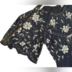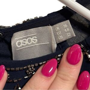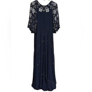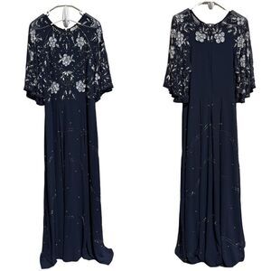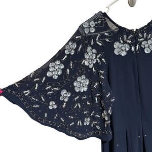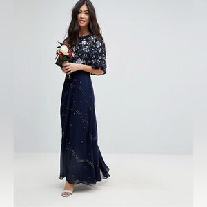 ASOS- Women’s Navy Blue Floor Length Embellished Dress Flutter Sleeve, Size 12