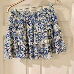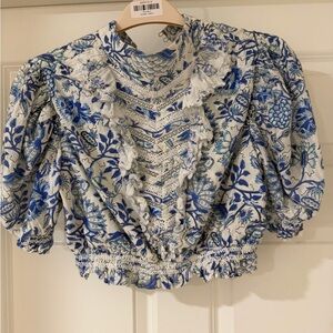 HEMANT & NANDITA Blue and White Floral Crop Top and Skirt Set