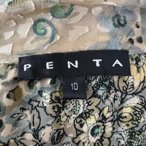 PENTA Beige Green Leopard Print Long Sleeve Button Down Blouse Top Silk Blend 10
