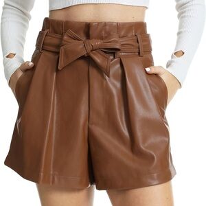 Elevate your style with these high waist brown faux leather shorts. Perfect for a chic and modern look.