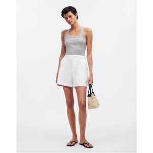 Madewell Clean Button-Tab High Rise 100% Linen Shorts in Eyelet White