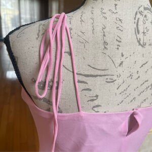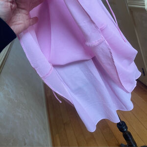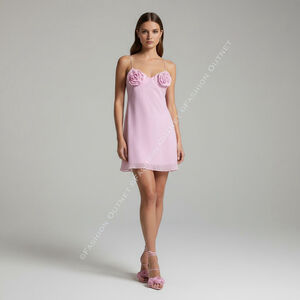 Elevate your next occasion with this stunning Bardot mini dress. Crafted in a luscious satin-finish fabric, this piece features whimsical 3D rosette appliqués on the bust and a delicate halter neckline that beautifully frames the shoulders. With its flattering A-line silhouette and dreamy "ballet pink" hue, it’s the ultimate choice for birthdays, cocktail parties, or a romantic date night. Brand new with tags and ready to turn heads.