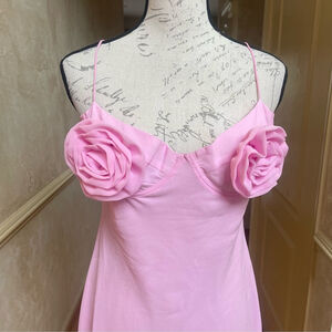 Bardot Pink Rose Details Minidress Sz L BarbieCore, Coquette, ResortWear, Fairy
