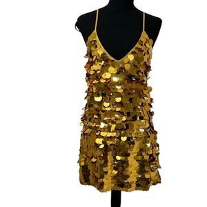 Silence + Noise Sequin Gold Mini Gold Dress(Size Medium)