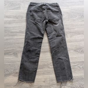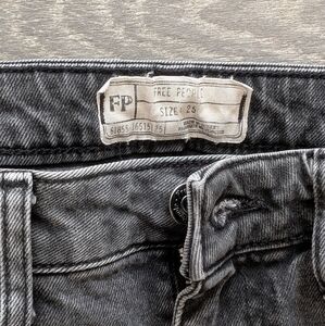 Free People High Rise Washed Black Straight Leg Jeans Women’s Size 25 Raw Frayed