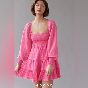 URBAN OUTFITTERS Smocked Long Sleeve Dress- Pink