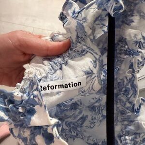 Off-Shoulder Reformation Marley Linen Dress in Olympia. SZ 6