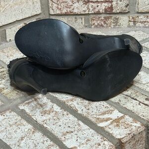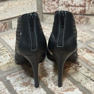 Jessica Simpson Jersee Black Perforated Leather Caged Peep Toe Heels Stiletto