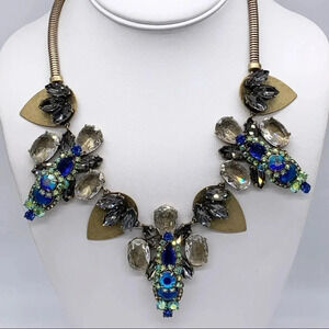 J. Crew Blue Green Gray AB Crystal Necklace