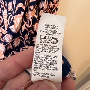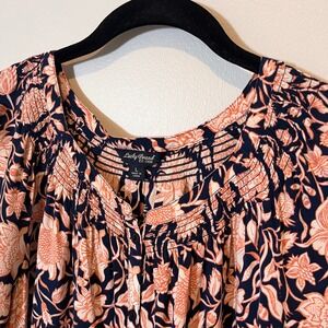 Lucky Brand Jemma Floral Smocked Peasant Top Navy Button Down Viscose Size Large