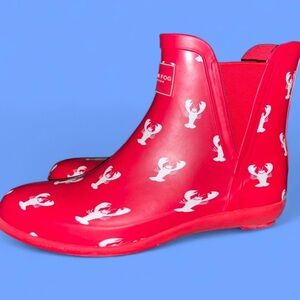 London Fog Red Lobster Pattern Rain Boots