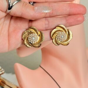⚜️ Gold Floral Pearl Earrings