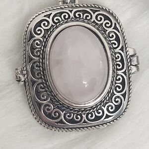 Rose Quartz Filigree Locket Jewelry | Silver Tone | Boho Vintage Style Crystal