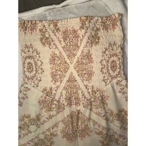 American Eagle Bella Strapless Jumpsuit Cream Pink Boho Smocked Wide Leg Large