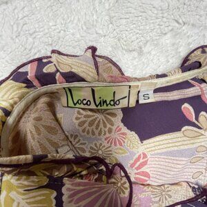 Vintage Loco Lindo Women's Ruffle Neck Popover Top Flared Sleeve Floral Multi Small