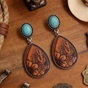 Western Earrings Outfit for Women Oval Silver Earrings Dangle Turquoise Western