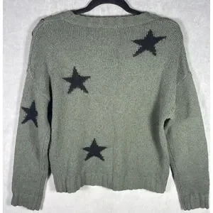 Rails Perci Olive Green Black Stars Merino Wool Knit Sweater XS Extra Small