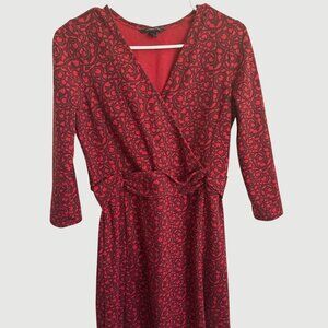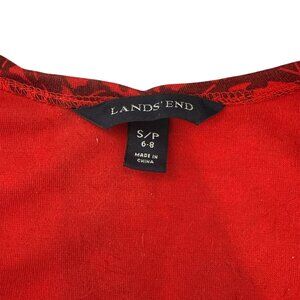 Lands' End Women's Red Floral Print V-neck 3/4 Sleeve Knee Length Dress Size S