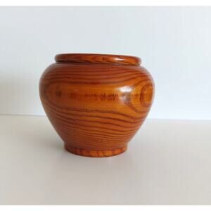 Vintage teak hand turned wood vase, 6 in high 4 in wide. Works with cottagecore, rustic decor for display or styling. Excellent condition, polished, no flaws.