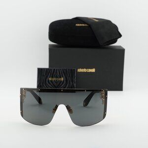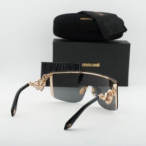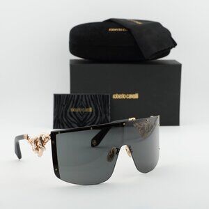 Roberto Cavalli SRC015M 0300 Shield Sunglasses - Gold/Brown