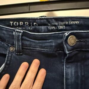 Sleek dark blue skinny jeans. Perfect for casual wear. Flattering fit and stylish design.they are the ‘midfit’ perfect for apple shape body types. Size 12 regular and in 16 regular.