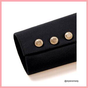• Double breasted front with button closure
