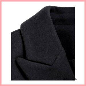Long Wool Pea Coat Double Breasted Knee Length Office Work Coat