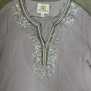 Nicoleblu Boho Beaded Tunic Top Lavender Sequin Embellished Medium