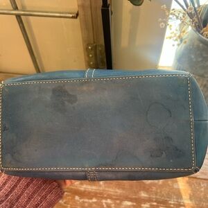 Chic blue leather hobo bag. Features a sleek design with a comfortable strap. Perfect for daily use.