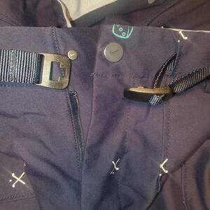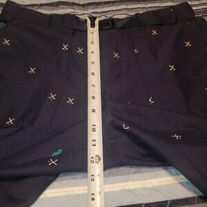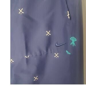 Lightweight Nylon Blend Nike Flex golf shorts with fun golf charms print and built-in belt. Slim fit with stretch for full range of motion on the course or casual wear. Print includes golf clubs, tees, money sign, dice.