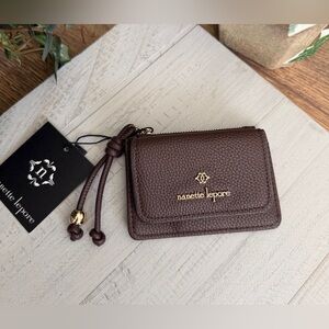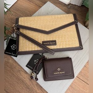 Nanette Lepore VL Natural Straw Wristlet w/Matching VL Chocolate Brown Wallet