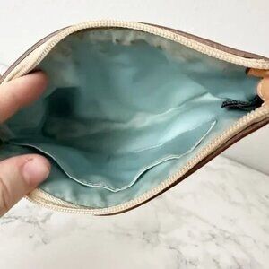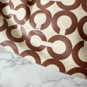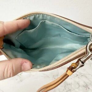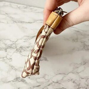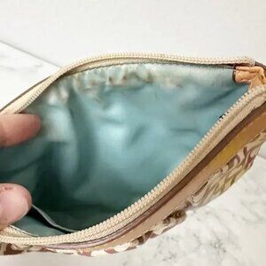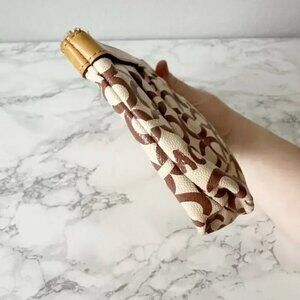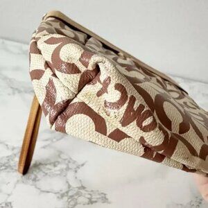 Coach Op Art Tan Brown Pleated Coated Canvas Large Zip Top Wristlet
