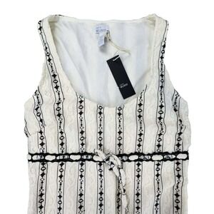 Keywords: West of Melrose dress, white black dress, striped mini dress, lace overlay dress, tie waist dress, bohemian dress, sleeveless dress, summer dress, casual dress, beach dress, petite dress, women's dress, new with tags dress, fashion dress, girly dress